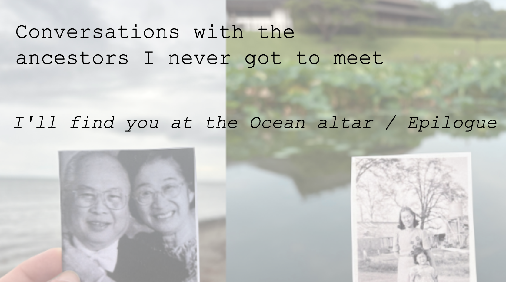 Midori wanted to compose a track for her audio-visual album titled Conversations with the Ancestors I Never Got to Meet. Her goal was to explore the spirituality of the Pacific Ocean as an altar, a place where she can reconnect with her Filipino and Japanese ancestors. The ocean acts as an altar since Midori knows that they also interacted with it, whether through "survival, pleasure, or treacherous immigration." Midori wanted to add a track using recordings she collected during her trip to the Philippines, to be accompanied by a digital altar using video, photography, and language.
