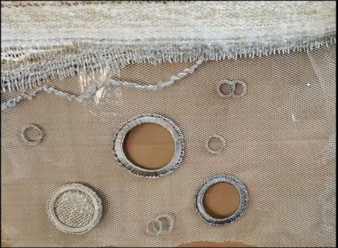Heather's goal for the residency was to begin working on a project that will one day become a full installation of textile hangings representing ocean water. Heather is interested in bringing public awareness to the ocean through an experiential installation, in order to "provoke and incite conversations about the ways even the slightest human action impacts our ocean, and the way someone else's activities affect the ocean and eventually our own coastal environments." Some of the questions she had in mind were: How do we know that what we see is water? What does it look like? Is it the reflection of water that we see, or do we see through it?