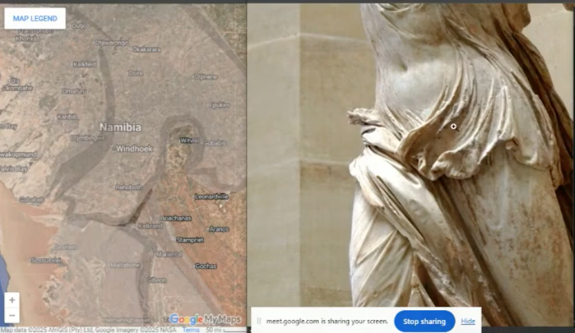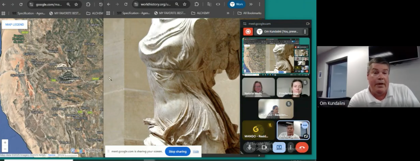 Bradly came into the residency wanting to challenge himself and push the boundaries of what his work could be. His artistic research centers on a coherent, global system of mythological iconography that he believes is encoded directly into the Earth's topography, not random pattern recognition, but a self-validating system of immense complexity. Using a unique process of research and digital drawing, and incorporating AI, he has created a world map that traces the myths and milestones of human history through visual imagery. One example of this is the Winged Nike of Samothrace, one of his favorite sculptures, which he found echoed in the ridges and mountains of the Earth's surface, discovering art in the very fabric of the landscape. His focus was on ancient cultures and the evidence of their imagery hidden in the topography of the earth. We challenged him to think of himself as one of those "ancients" he was studying, and to try to develop his own myths and symbology.