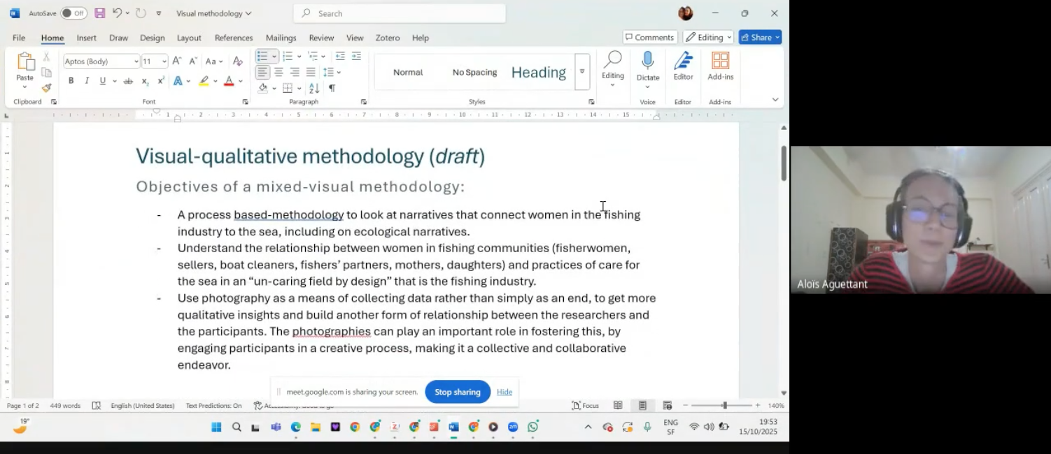 Aloïs' project was part of her wider PhD research centered around human geography and also part of MEDiverSEAty. MEDiverSEAty looks at the "gender dynamics of practices of care in fishing communities in the Mediterranean," particularly in Sicily.