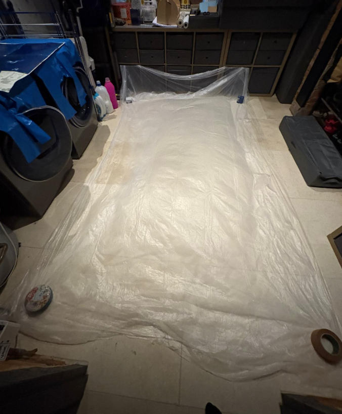 After creating, playing, and experimenting with small and medium-sized pieces, in the final stretch of the residency she converted one of her rooms into a darkroom and improvised-yet-effective studio to create her largest piece to date, measuring 1.5 by 3 meters.